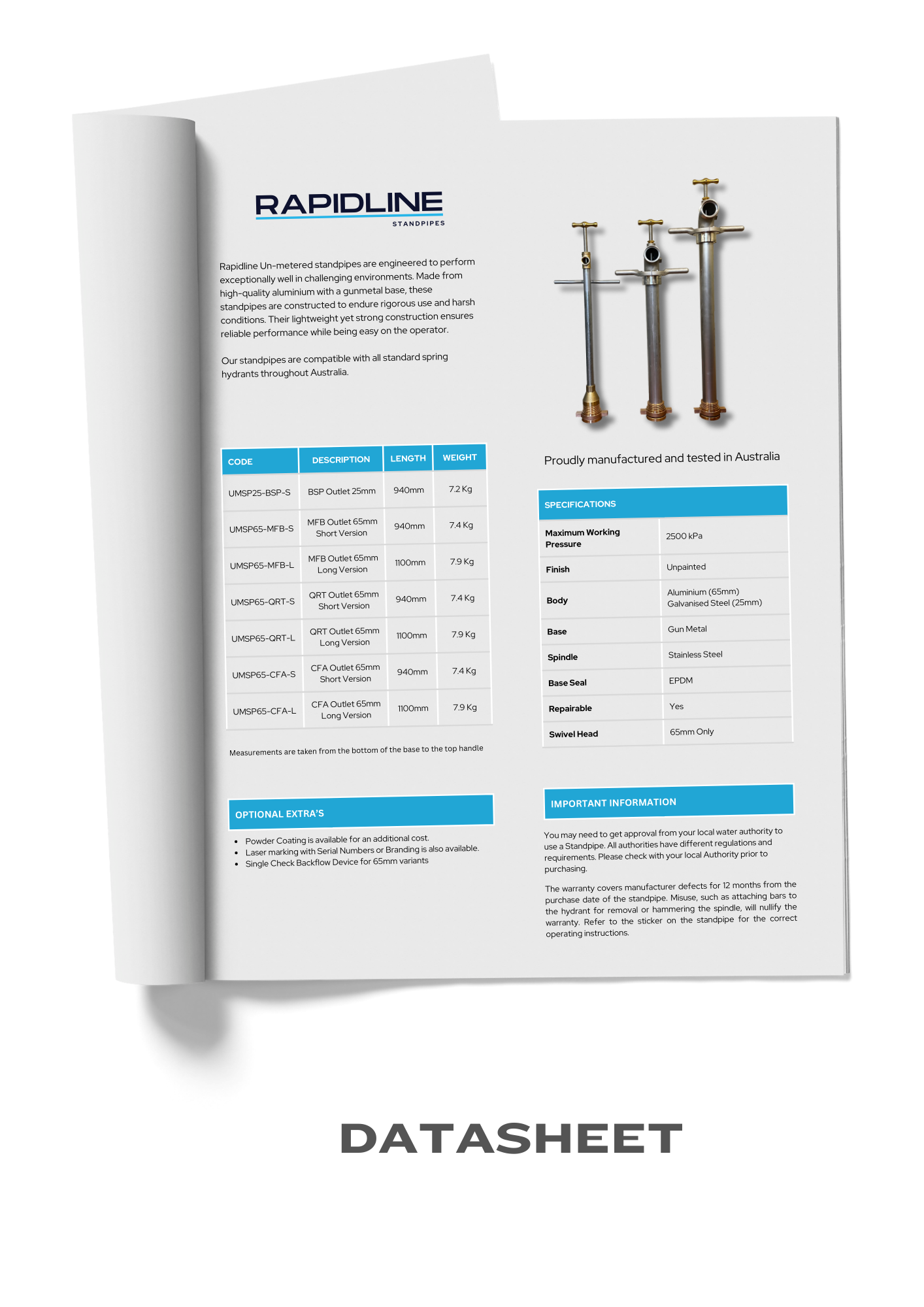 The RAPIDLINE Unmetered Standpipe Range